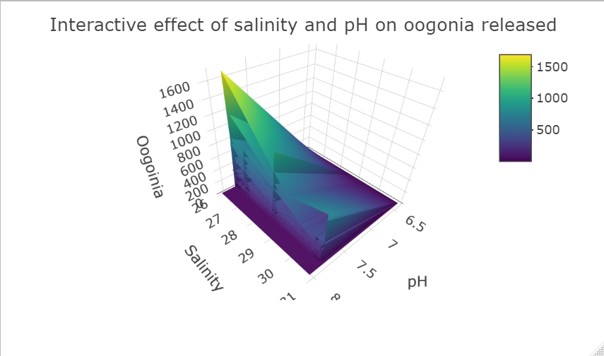 - Interactive effect of salinity and pH on oogonia release: graph with markers, graph with surface contour, Rmarkdown, potential picture for print